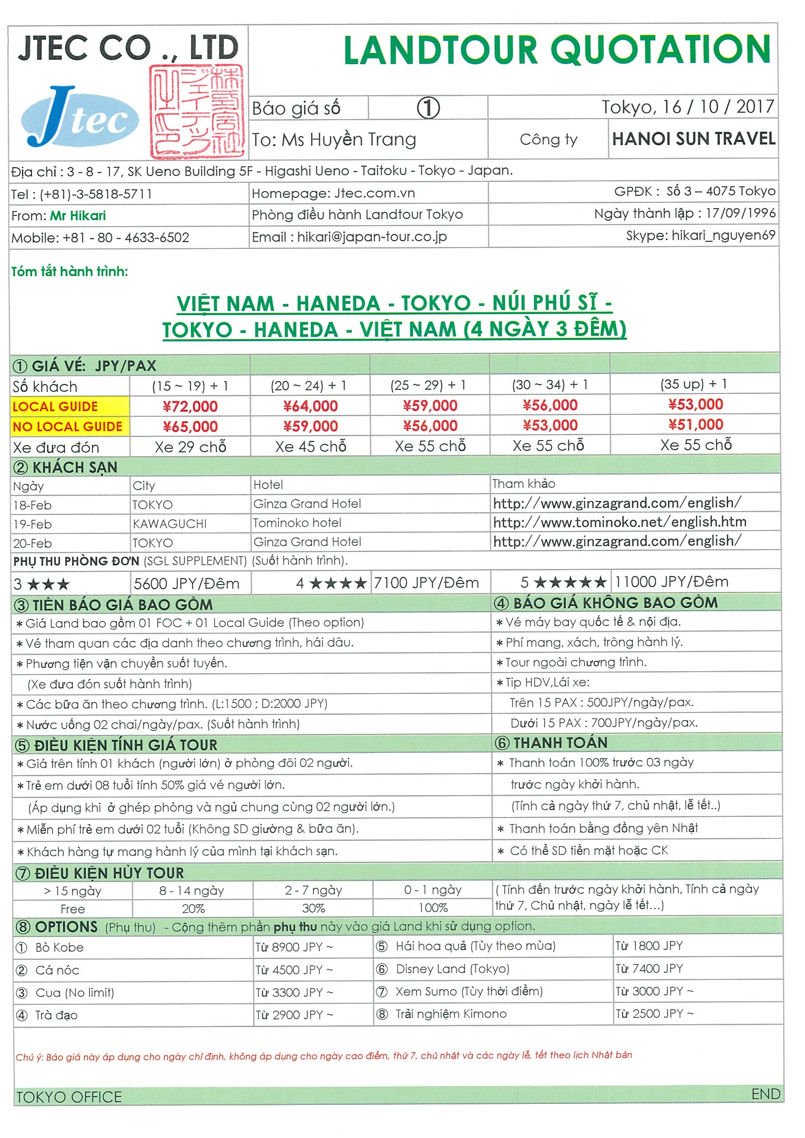 ※ Tóm tắt hành trình:VIETNAM - HANEDA - TOKYO - NÚI PHÚ SĨ - TOKYO - HANEDA - VIETNAM |