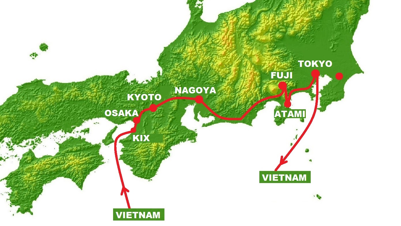 ※ Tóm tắt hành trình:VIETNAM - KIX - OSAKA - KYOTO - NAGOYA - NÚI PHÚ SĨ - TOKYO - VIETNAM
